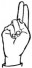 На ћирилици написано РУМЕНА ТАСИЋ састоји се из 11 слова [?]. Исписано ћириличном једноручном азбуком за глувонеме: